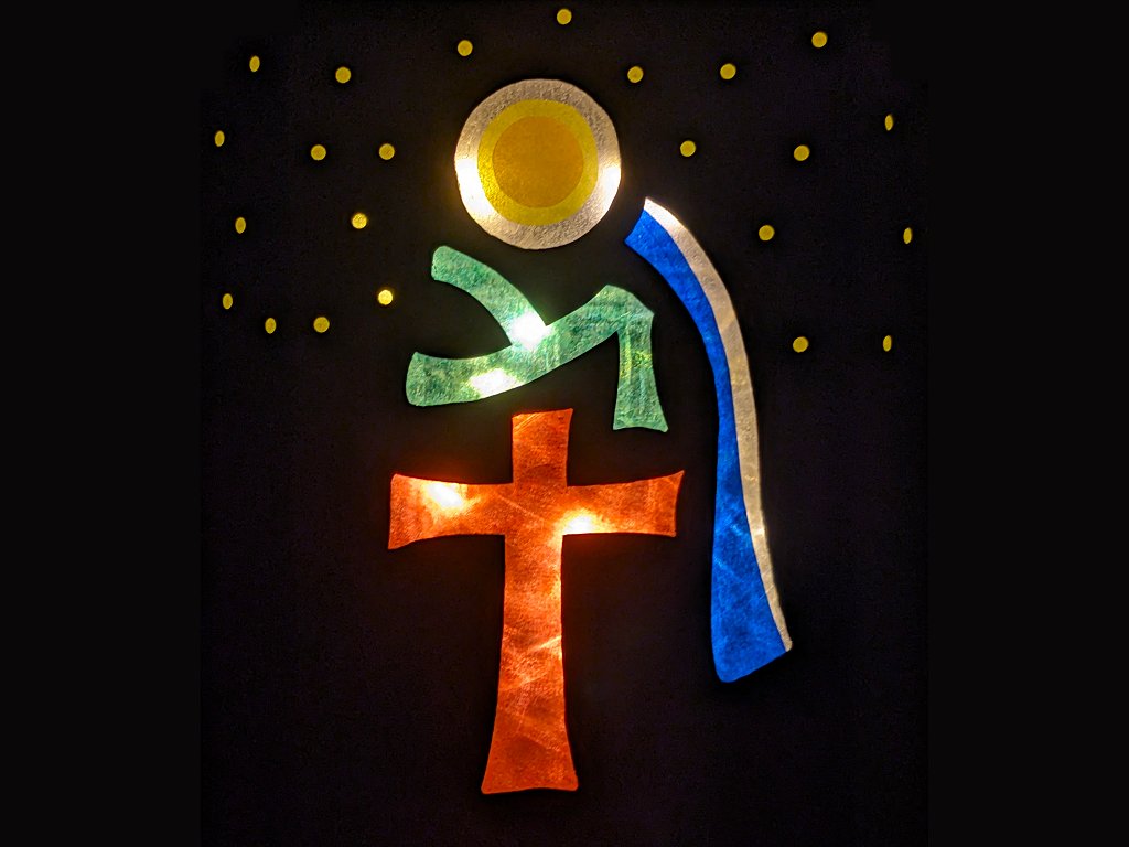 In Verbindung mit dem Kreuz (rot markiert) weist die "Sonne der Gerechtigkeit" aus Maleachi 3,20 auf Jesus Christus hin. Maleachi 3,20 ist zudem der fünftletzte Vers des gesamten AT, kurz bevor in den beiden letzten Versen 23-24 der Prophet Elia angekündigt wird, der dann - nach 400 Jahren "Funkstille" zwischen AT und NT - in der Person von Johannes dem Täufer gekommen ist, um Jesus Christus den Weg zu bereiten (Matthäus 3,1-3; Matthäus 11,13-14; Matthäus 17,10-13).